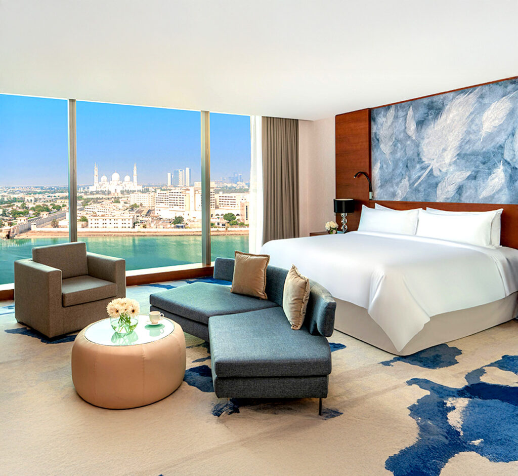 A luxurious 5-star beachfront resort offering stunning views of the Sheikh Zayed Grand Mosque. Located just 15 minutes from Zayed International Airport, the hotel features 8 restaurants and bars, an Olympic lap pool, private sandy beaches, and exceptional event facilities.